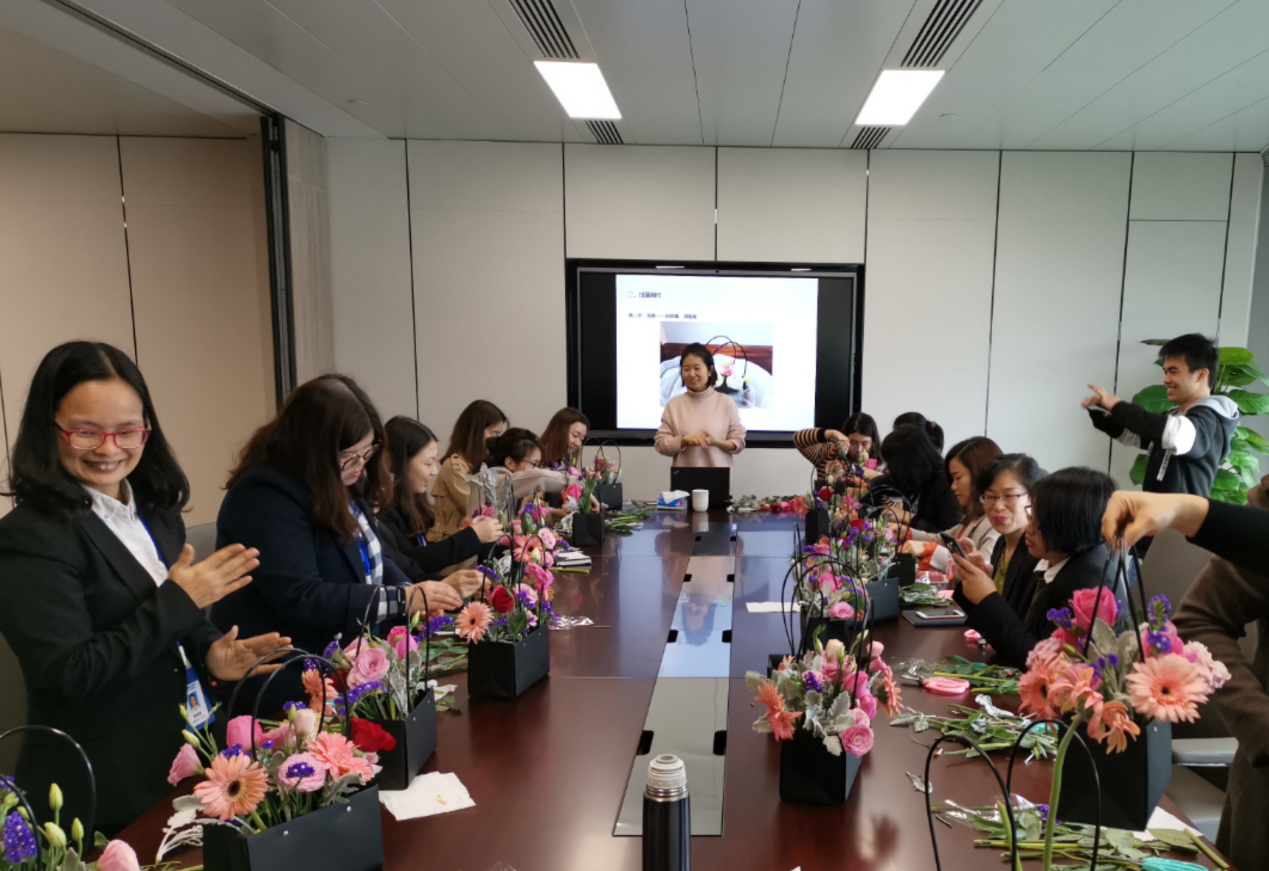 3月9日,广东复大医药有限公司为员工举行了主题为“感恩三月,插花品香”活动,请来了专业的花艺老师,现场教学,让员工边看边自己动手,学习插花技巧。花艺活动结束后,公司还为2月、3月生日的9名员工举行了集体生日会。