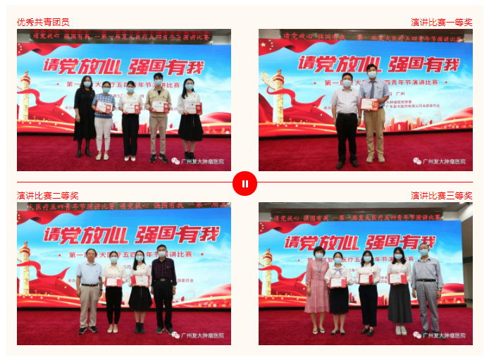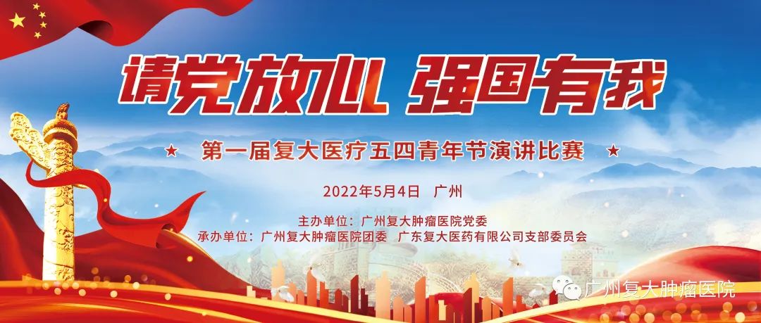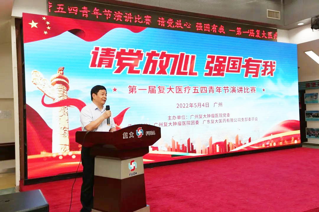在喜迎党的二十大召开之际,中国共产主义青年团也迎来成立100周年庆典。为团结引领广大团员青年永远跟党走、奋进新征程,进一步加强员工的思想建设、组织建设,弘扬与培养爱国主义精神,5月4日,广州复大肿瘤医院党委、团委以及广东复大医药有限公司支部委员会联合举办“请党放心,强国有我”主题演讲比赛及优秀团员表彰活动。