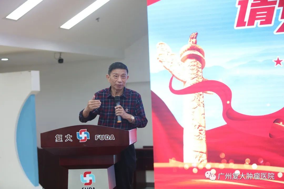 中国卫生健康思想政治工作促进会常务理事、原广东省卫生厅党组副书记亓玉台,广州市文联副巡视员、广州诗社副社长刘圣清,广东省卫健系统政促会特聘党建专家、原广东省第二人民医院党委书记吉琳,医院党委书记刘建国、总经理助理何世银、党委副书记廖春英、团委书记邓春娟等参加此次会议。