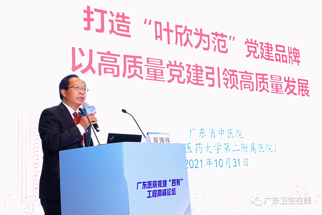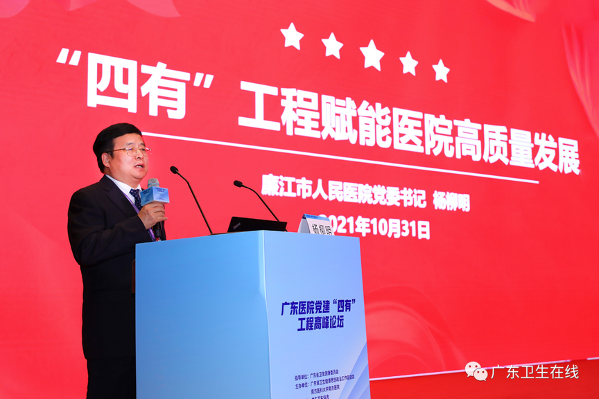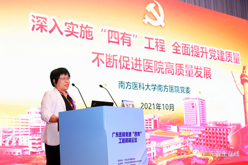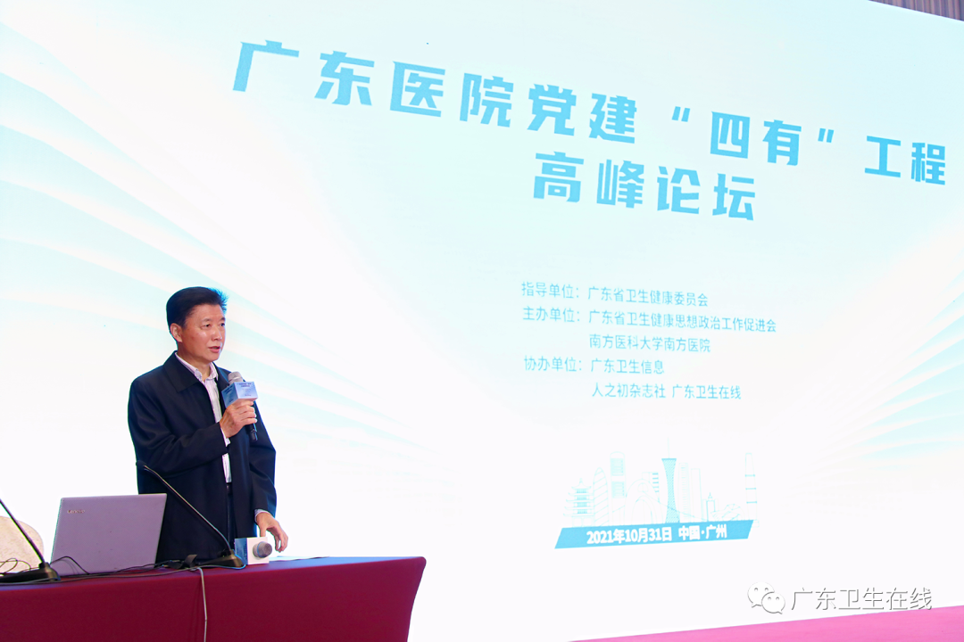10月31日,由广东省卫生健康委员会指导,广东省卫生健康思想政治工作促进会、南方医科大学南方医院承办,人之初杂志社、广东卫生在线、广东卫生信息协办的广东医院党建“四有”工程高峰论坛在广州举办。广东省卫生健康委党组副书记、副主任、一级巡视员黄飞出席大会并致辞。