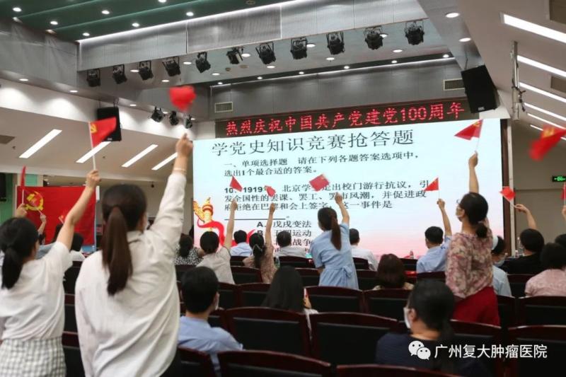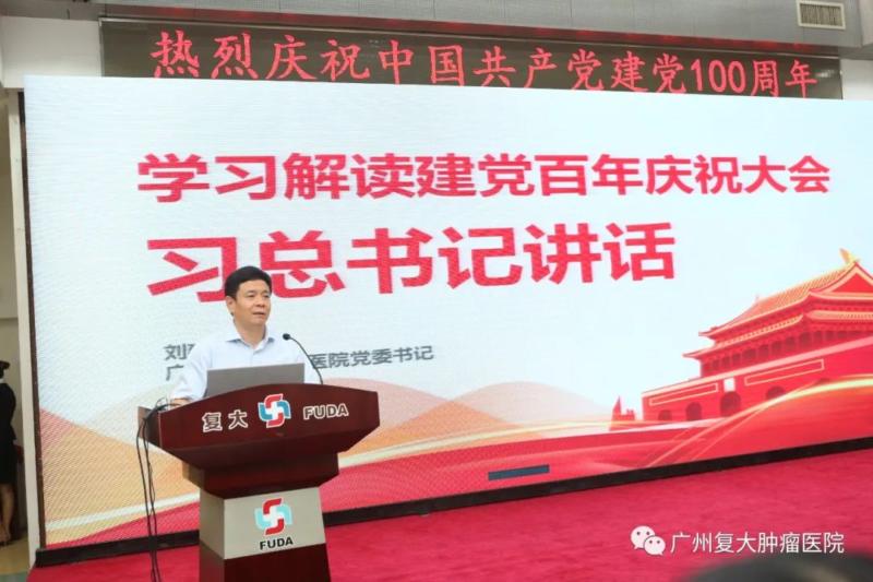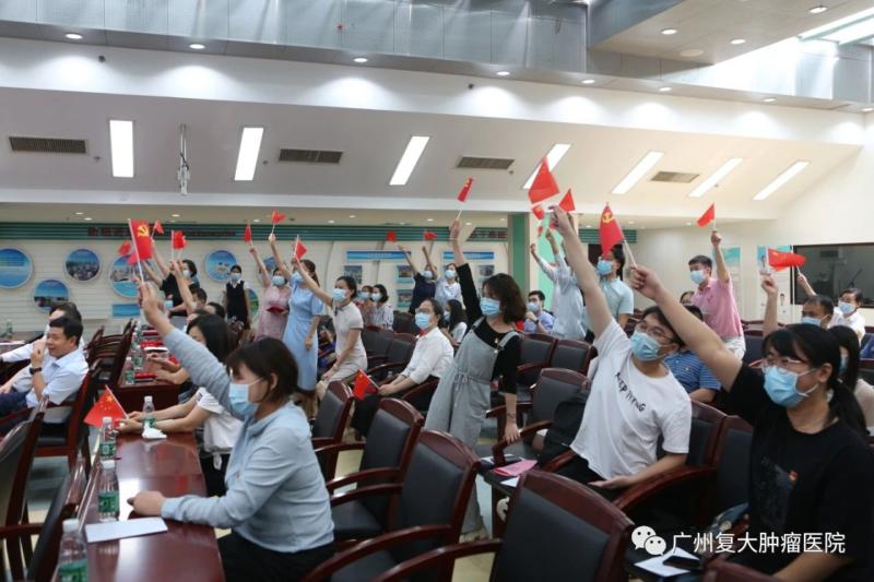 7月10日上午,广州复大肿瘤医院党委隆重召开“庆祝中国共产党建党100周年”大会,回顾党的光辉历程,弘扬党的精神,深入学习贯彻习近平总书记在庆祝中国共产党成立100周年大会上的重要讲话精神,动员医院广大党员干部发挥先锋模范作用,履职尽责、担当作为,以昂扬向上的精神状态和工作热情,更好地为人民群众的健康服务。