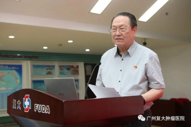 会上,时代楷模徐克成荣誉总院长以自身学习百年党史的体会,结合医院发展的实际情况作讲话。徐院长向奋斗在医院各个部门、各个时期的全体党员职工表示诚挚的问候,向受表彰的党员和支部,及新入党的同志表示热烈的祝贺!对医院党委获得“广东省先进基层党组织”表示祝贺!面对新要求新挑战,他对全体党员职工提出两点希望:一是医院党委引领医院,对医院的行政事务进行监督,加强党风、行风的廉政建设。要保证医院在“科技兴院、诚信立院、博爱办院”的办院方针以及在为人民服务当中永远不偏离方向,永远把病人的利益放在第一位,永远把人民的利益放在至高无上的地位;二是党员要不忘初心、牢记使命,发挥先锋模范作用,沿着党的指引方向不断地前进,推动广州复大高质量发展。
