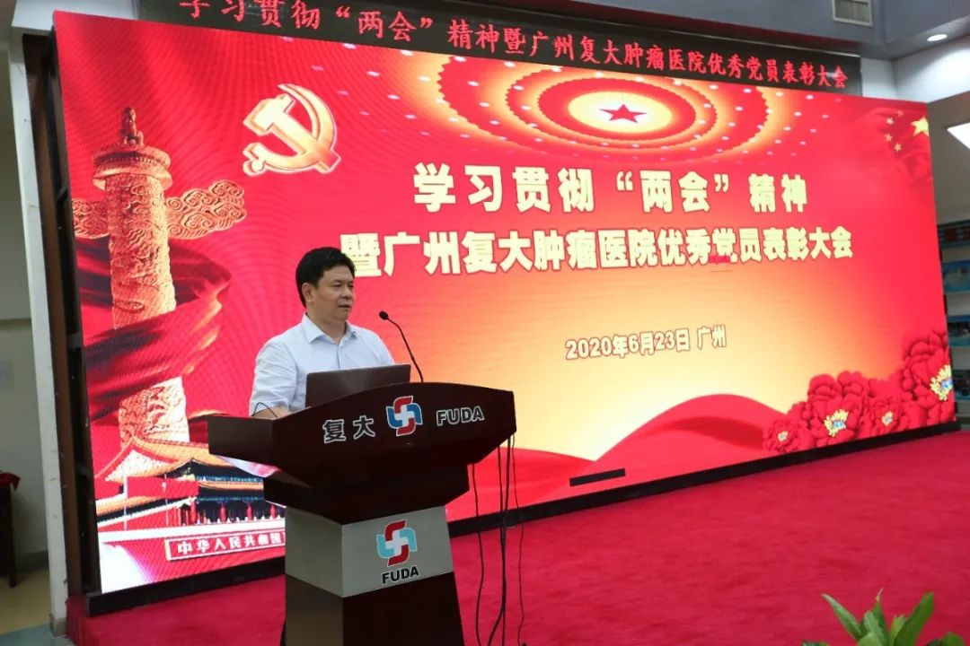 在纪念中国共产党成立99周年之际,为进一步加强医院基层党组织建设,更好地发挥基层党组织战斗堡垒作用和共产党员先锋模范作用,广州复大肿瘤医院党委于2020年6月23日下午,组织召开了学习传达“两会”精神暨表彰先进基层党组织、抗疫先锋模范党员、优秀共产党员大会。