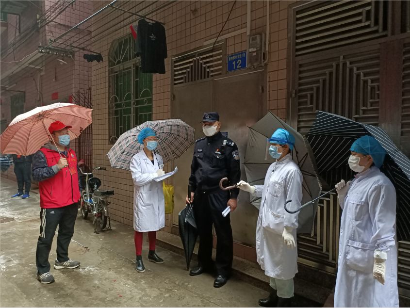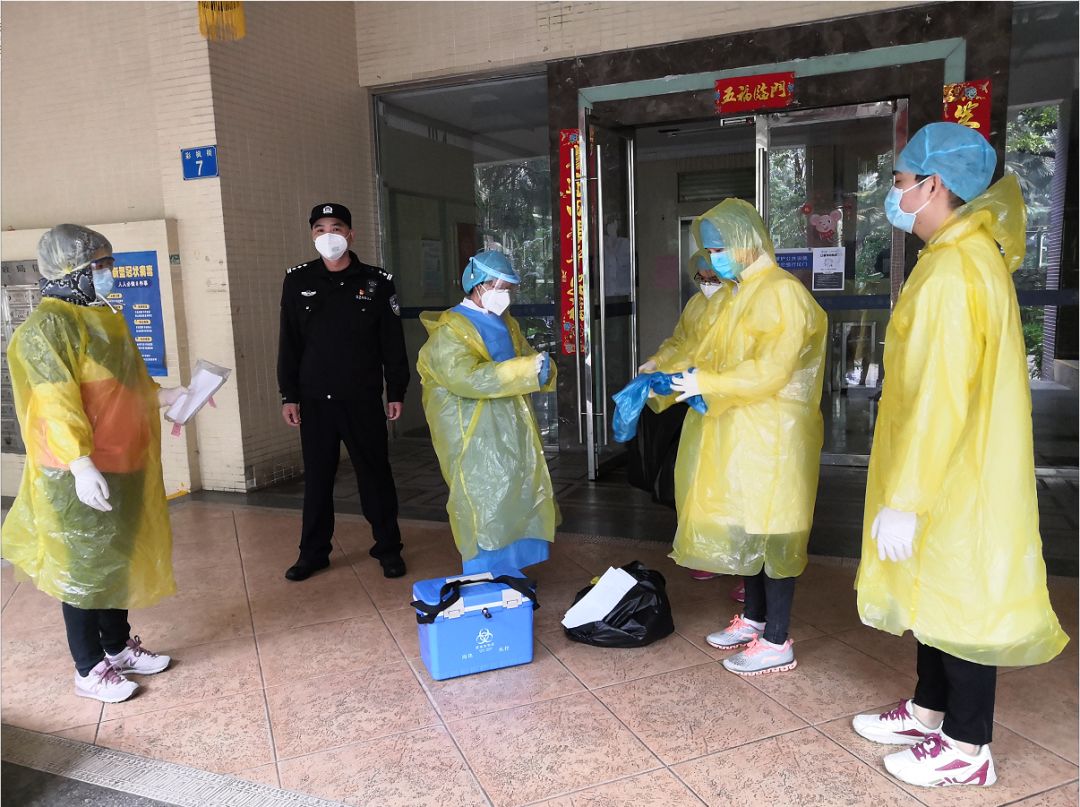 2月13日由来自暨南大学附属复大肿瘤医院的向迤(组长)、房宝英、廖晓非、梁文雁、谭春荷组成的支援海珠区疫情防疫小队,“逆行者”们在海珠区防控工作领导小组的带领下到达江海社区中心为社区疫情做好入户排查等管理工作。